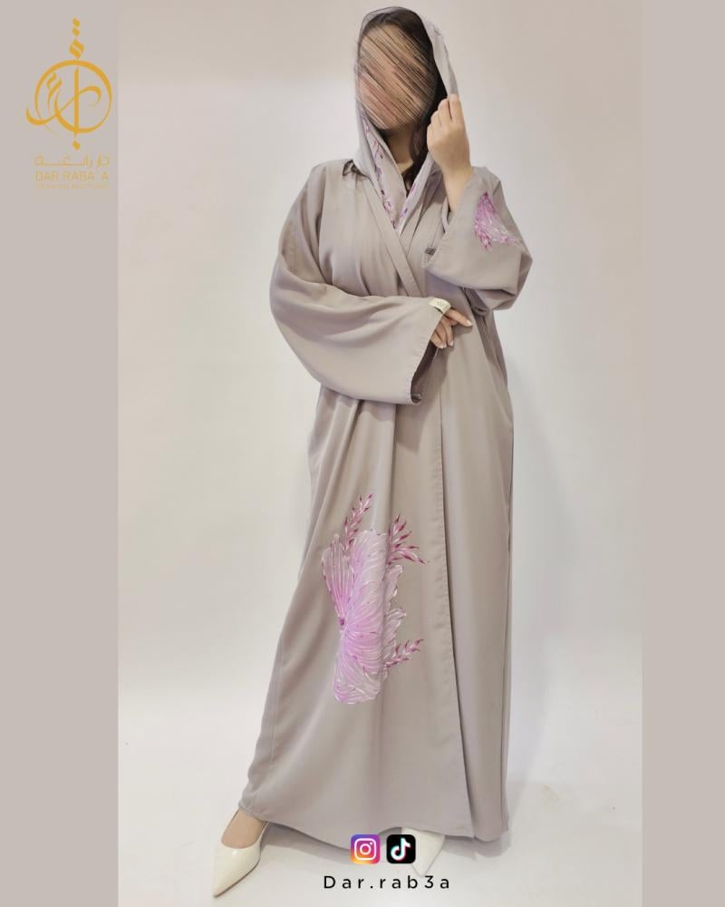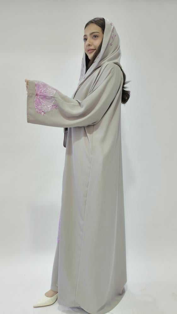 - اسم المنتج: عباية برسمة نصف وردة زهري - C02